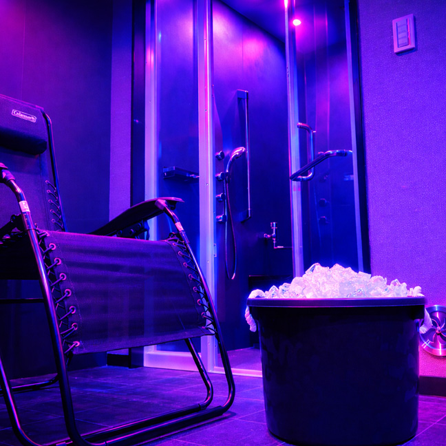 ロウリューランド関内馬車道のサウナはサウナ好きには堪らない空間です。落ち着いた雰囲気の中、サウナルームを独り占め。室内はライトアップされており自分好みの空間を作り上げる事ができます。