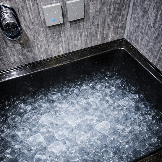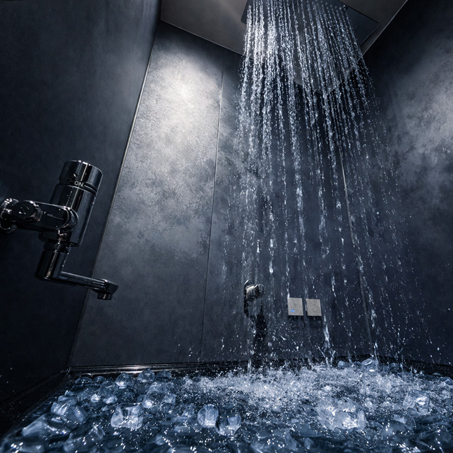 キンキンの氷水に、上から叩きつける冷水。